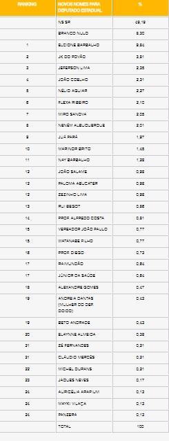 Na sequência da pesquisa aparece o radialista Jeferson Lima (PODE), com 2,35%, seguido de perto pelo vereador de Belém João Coelho (PDT), com 2,31%, e pelo ex-prefeito de Santarém, Nélio Aguiar (UB), que soma 2,27%. Nomes de peso da política paraense, como o ex-senador Flexa Ribeiro (PSDB), com 2,10%, e o ex-deputado estadual Miro Sanova (PT), com 2,05%, surgem atrás de JK do Povão, o que amplia ainda mais o significado do seu desempenho.