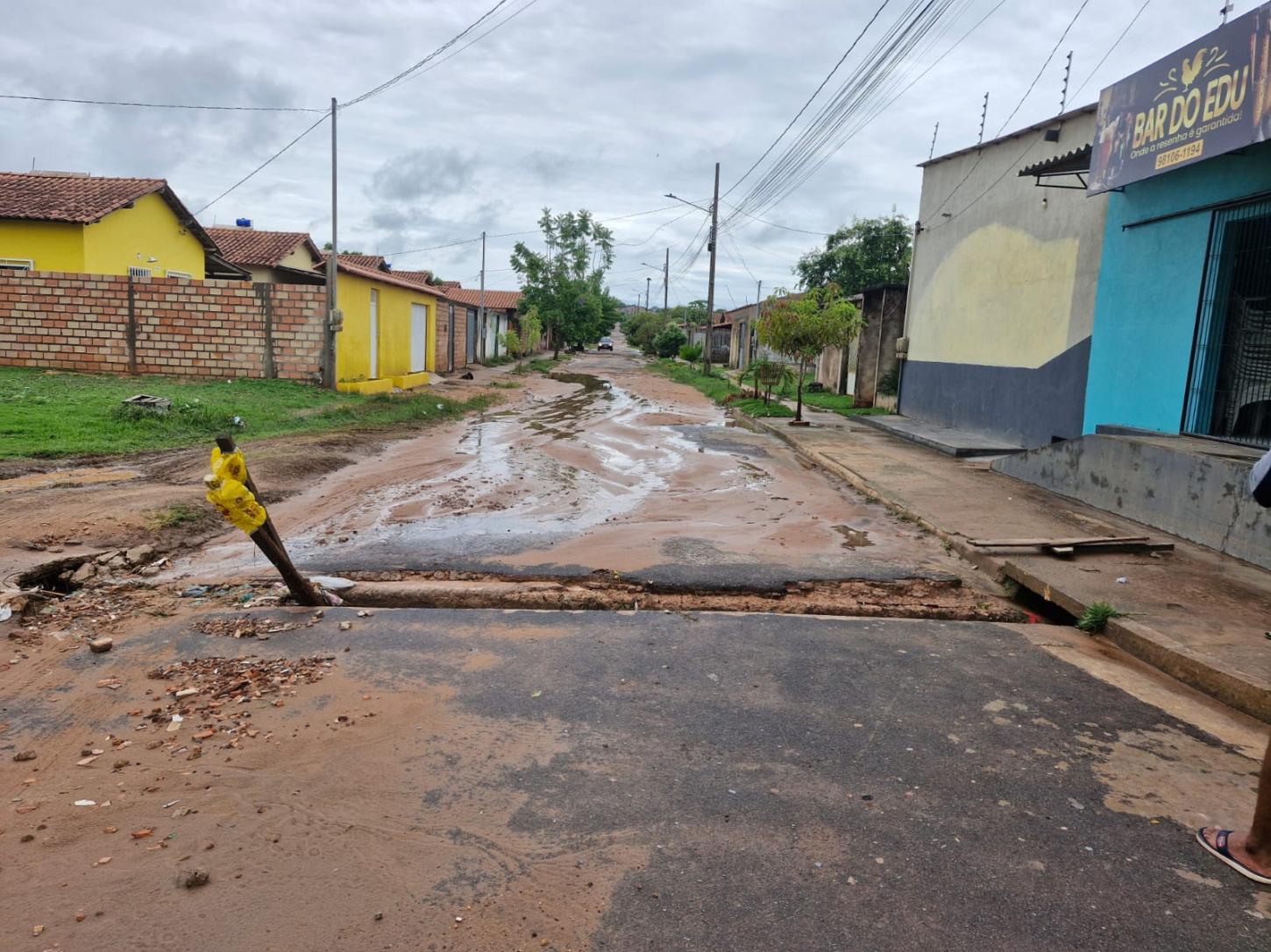 Entre os locais mais atingidos está o residencial Salvação, na Rua Jacamim. A força das águas foi tamanha que arrancou a grade de proteção de um bueiro no cruzamento com a Rua Pardal, agravando os riscos de acidentes para pedestres e veículos.
